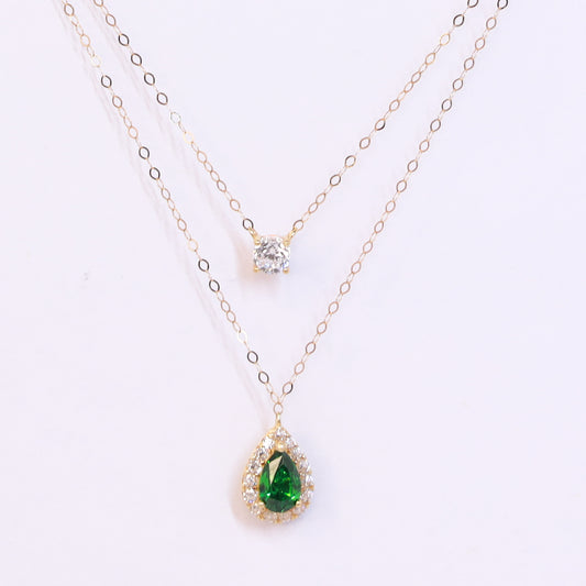 GREEN WATERDROP LAYERED CZ 18KT GOLD NECKLACE