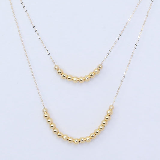 18KT GOLD TWO LAYER BEAD BALL NECKLACE