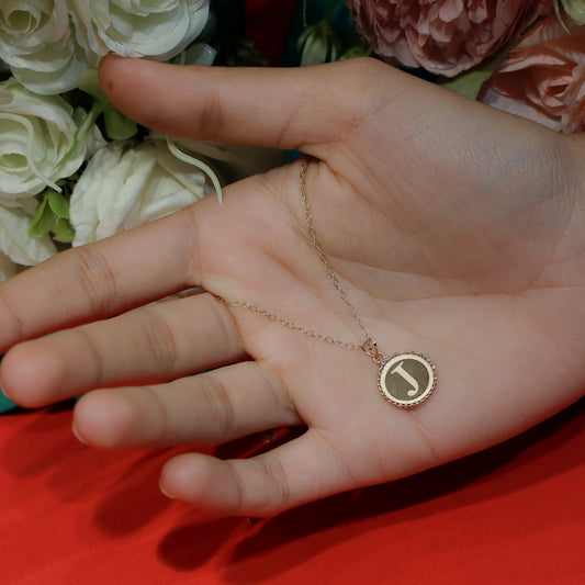 18KT GOLD LETTER J ROUND PENDANT