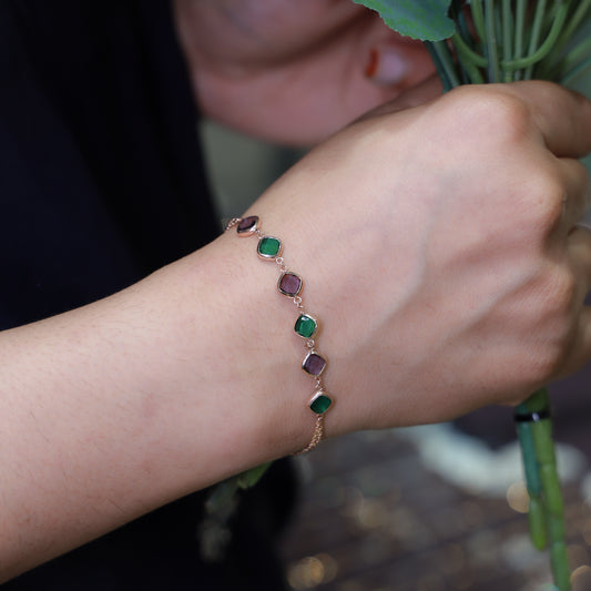 18KT GOLD GREEN STONE DUAL LINK BRACELET