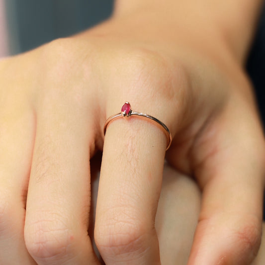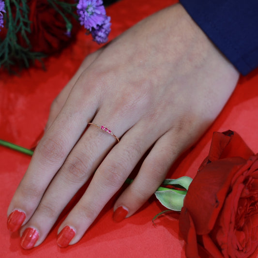 18KT GOLD PINK-RED GEM EVERYDAY RING
